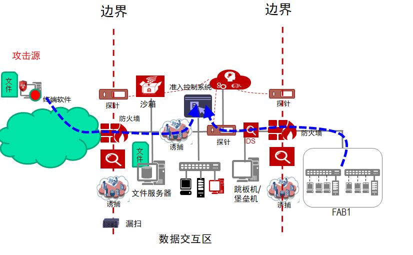 4.在安全隔離區專門部署文件交換服務器,同時部署沙箱,所有文件進入生產網絡之前,需要先經過常規IT檢測、誘捕網絡和沙箱的檢測,然后才能上載在文件交換服務器,只有經過安全檢測的設備才能在文件交換服務器進行下載。