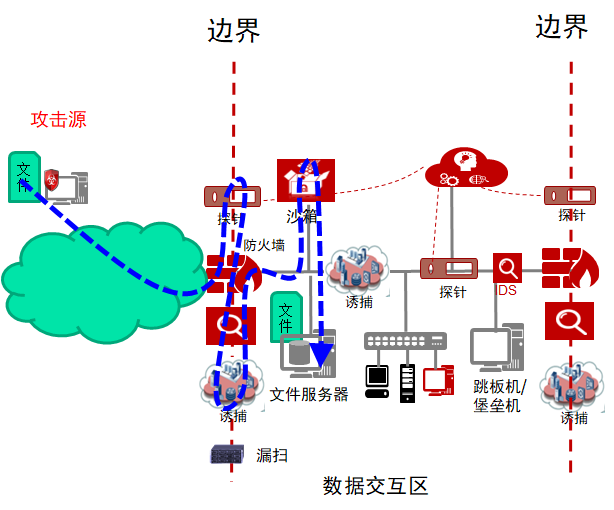 ? 網絡誘捕系統:向攻擊者呈現虛假資源,誘導攻擊,把攻擊引入蜜罐,與攻擊者交互,通過某些技術手段,確認攻擊意圖,以便采取對應措施。