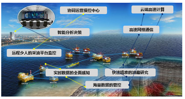 通過提高海上平臺的生產監測和優化控制能力,對開發生產全過程進行實時監測、預警診斷、主動優化、遠程操控、協同運營和輔助決策,實現一體化智能管控。油田運營由目標導向、分工合作的方式向數字化驅動、智能化協同的一體化方式轉變,創建“智能、安全、高效”的新型海上油氣開采運營模式。