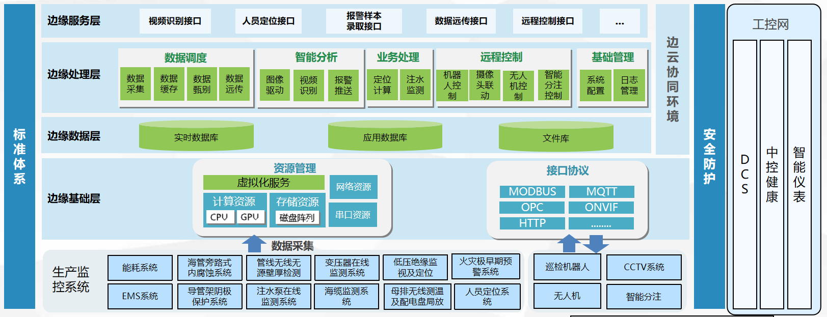 基于工業互聯網平臺,將各類傳感設備、無人機、機器人、PDA、定位手環等設備,通過邊緣計算建立支持多協議的實時數據通道,實現海上平臺設備與系統間的數據互聯、信息互通。