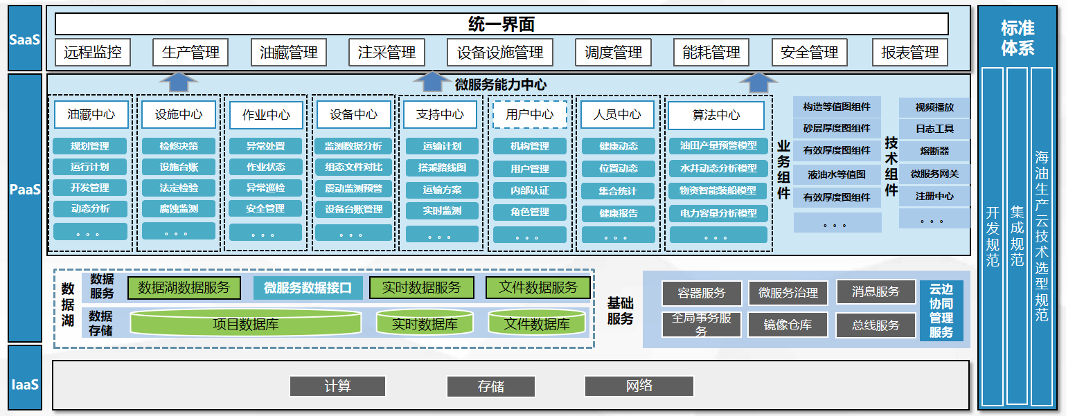 基于渤海智能油田試點建設項目搭建的工業互聯網平臺,是多人協作的平臺,用于幫助開發者提升數據價值,實現數據驅動的業務創新。依托海油生產云平臺,擴展邊緣微云,通過邊緣計算、虛擬化、容器化、AI、IoT、微服務、數字孿生等技術,構建海量實時數據采、存、管、用、算的端+邊+云應用高效協同架構,以分析和預測為核心,內置了百余種數據挖掘算法,立足推動企業“上云用數賦智”行動。以“工業互聯+端、邊、云協同”藍圖為指導,以業務互聯為基礎,基于“智能終端+工業互聯+云服務”創新模式,為“智能、安全、高效”的新型海上油氣開采運營模式提供技術支撐。