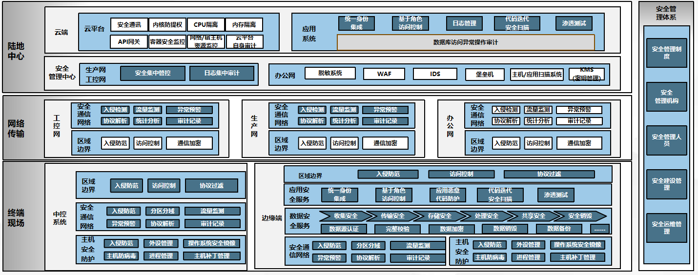 網絡安全防護按照等保2.0二級的要求,建立 “一個中心三層保護”的技術防控體系和一套完備的管理體系。