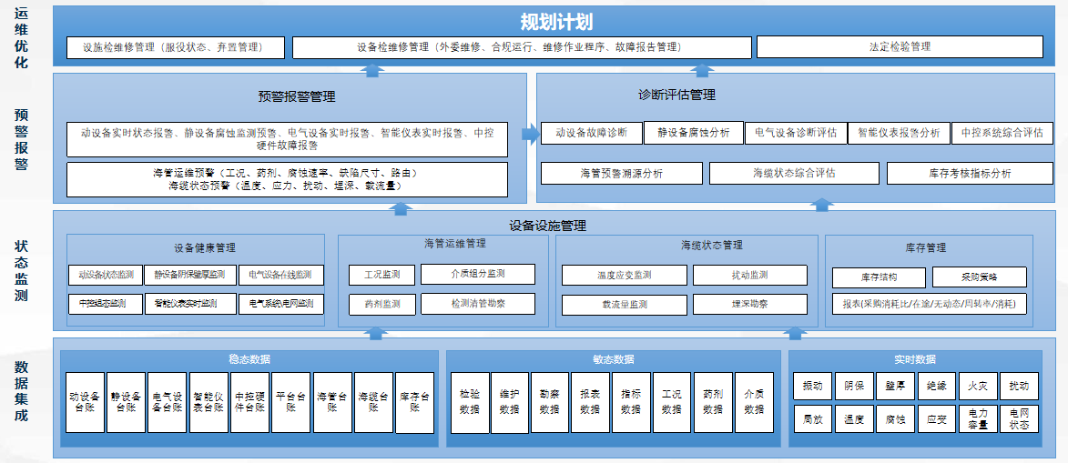 渤海智能油田試點建設項目,遵循中國海油數字化轉型頂層設計和智能油田總體規劃,構建端、邊、云模式下的數據采集、傳輸與匯聚管理平臺,研究物聯網、云計算、大數據和人工智能等數字技術與油氣田核心業務深度融合與創新應用,實現對油田生產現場的實時監測、遠程操控、預警診斷和主動優化。