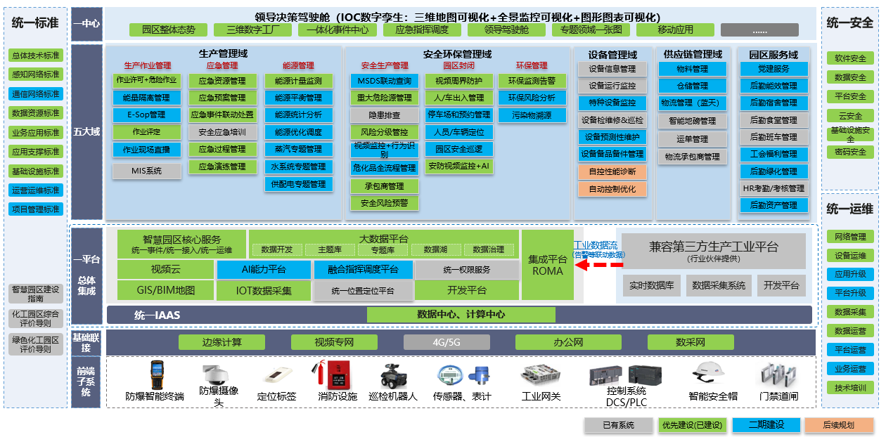 水平整合:統(tǒng)管系統(tǒng)、生產(chǎn)系統(tǒng)、網(wǎng)絡(luò)安全三類業(yè)務(wù),圍繞安全生產(chǎn),以智慧園區(qū)試點項目落地;