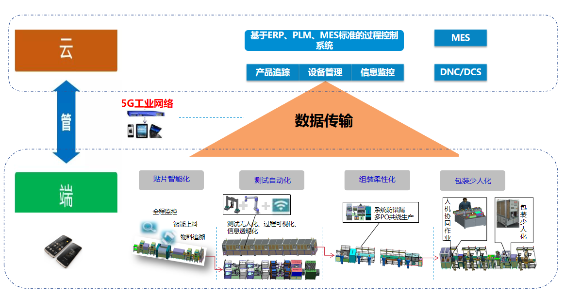 引言:隨著5G時代的到來,智能終端成為集5G通信、柔性顯示、高端制程芯片等于一體的復(fù)雜精密電子產(chǎn)品典型代表。同時,智能終端產(chǎn)品快速迭代、多品種小批量、趨于復(fù)雜組成及豐富的功能,也對終端制造生產(chǎn)線提出了更加柔性、數(shù)字化、精益與智能化的要求。中興通訊作為“數(shù)字經(jīng)濟的筑路者”,充分發(fā)揮自身既懂生產(chǎn)、又懂信息技術(shù)的優(yōu)勢,持續(xù)深耕“數(shù)字化”與“柔性化”融合的智造解決方案創(chuàng)新實踐,不斷完善工業(yè)互聯(lián)網(wǎng)平臺建設(shè),搭建具有中興特色的“云管端”生產(chǎn)架構(gòu),積極探索創(chuàng)新技術(shù)應(yīng)用與成果轉(zhuǎn)化,打造基于數(shù)字化驅(qū)動的數(shù)字化終端智能制造工廠,提升生產(chǎn)效率與質(zhì)量。