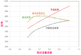 熱電廠的汽機大多采用節(jié)流方式對汽機負荷進行調(diào)整,節(jié)流方式會導致蒸汽能量的損失。而熱電由于蒸汽負荷波動大,所以汽機負荷會在較大范圍內(nèi)波動。如果主蒸汽壓力不考慮汽機負荷的話,會導致低負荷段的汽機能效損失較大。如下圖展示了汽機總效率的計算原理:
