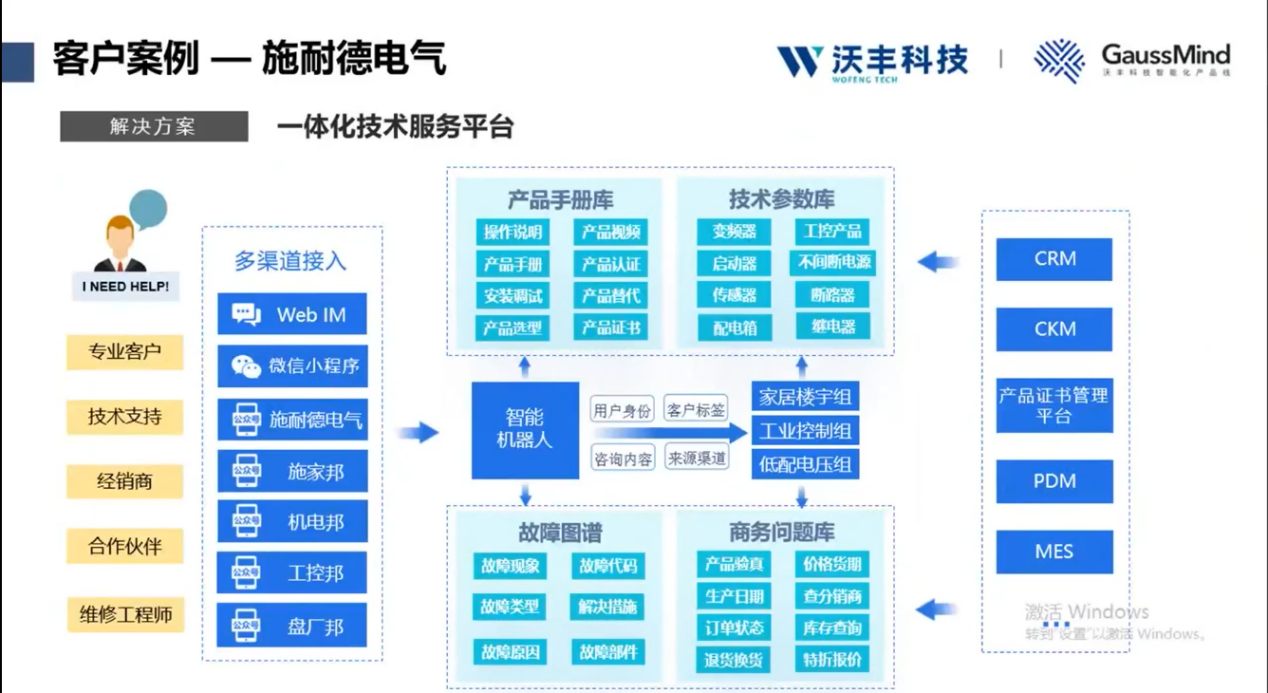 數十萬產品信息統一管理難度大、數十個系統對接查詢費時費力、故障排查時間長難度大知識調用不便,這些業務難點在龐大的公司架構和復雜的產品結構下日益凸顯。工業互聯網平臺的技術創新和應用支持,正在被大規模數字化轉型的制造業所需要,以施耐德為例的世界500強企業與中國人工智能與營銷服務解決方案提供商沃豐科技強強聯手,直擊業務痛點,打通業務壁壘,實現業務整體的大幅優化。
