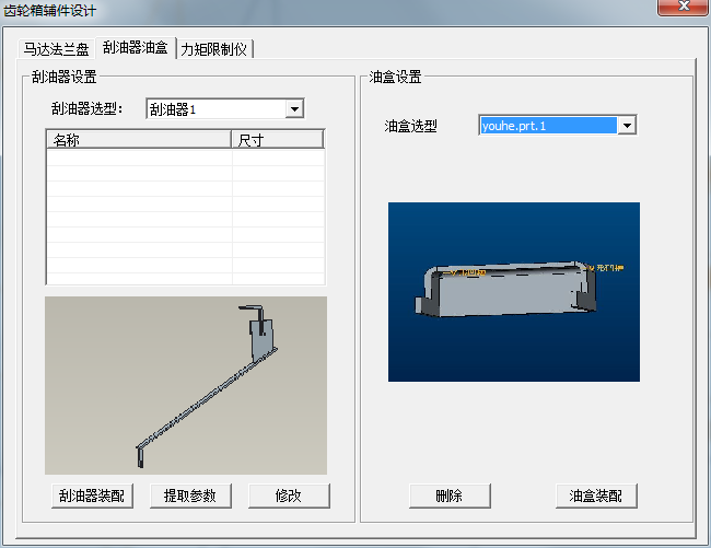 在此界面下:“裝配”、“提取參數”、“修改”以及“刪除”功能,與齒輪 箱 功能 按鈕 解釋相同 ;