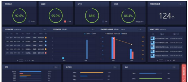 儀表盤管理:針對數據的可視化,儀表盤是數據最終呈現的方法,可以支持歷史數據、實時數據、上傳的文本數據,以及故障數據,主數據、故障預警數據等進行可視化展示,操作方便,支持多種類型的圖標構建。
