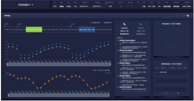 開展設備運行現場精益運維管理,對現場運維期的業務進行細化,將數據分析、資產管理、故障預測和診斷、設備KPI管理、物資保障和作業窗口等集中在一起,作為基礎數據,結合現場運維策略,將現場工作任務進行綜合管理,降低設備運維成本(減小備品備件損失和更換頻次)、降低設備故障頻次和停機時間,提高設備可利用率及收益。其中,重點實現機組故障自診斷分析,推送合適作業窗口、備件位置、數量信息及故障解決方案;實現對現場KPI的管理,給現場運維計劃提供數據支撐。以上信息均以工單的形式下發至設備現場,解決了現有的工單不能自動創建、備件位置和數量查詢繁瑣等問題,改善了故障處理效率,降低了設備損失及運維成本。