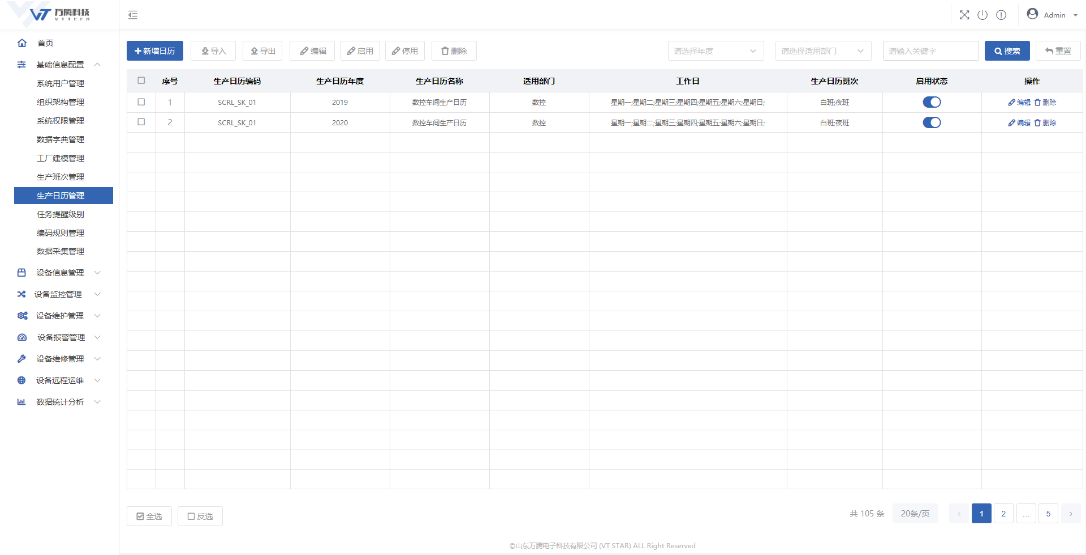 基礎(chǔ)信息管理用來維護管理系統(tǒng)運行所需的各項基礎(chǔ)信息,為設(shè)備管理系統(tǒng)提供基礎(chǔ)數(shù)據(jù)支撐,是設(shè)備管理系統(tǒng)的基礎(chǔ)功能。具體功能包含系統(tǒng)用戶管理、組織架構(gòu)管理、系統(tǒng)權(quán)限管理、設(shè)計字典管理、工廠建模管理、生產(chǎn)班次管理、生產(chǎn)日歷管理、提醒規(guī)則管理、編碼規(guī)則管理、數(shù)據(jù)采集管理。