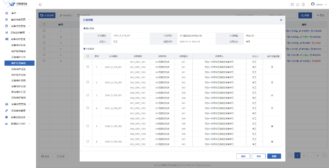 設(shè)備維護管理用來維護管理設(shè)備點檢及保養(yǎng)工作,通過規(guī)范過程對設(shè)備的規(guī)定部件(位)進行定期的點檢及保養(yǎng),以使設(shè)備的隱患和缺陷能夠得到早期的發(fā)現(xiàn)、早期預(yù)防、早期處理。利用系統(tǒng)依次制定點檢(保養(yǎng))標準、點檢(保養(yǎng))計劃生成具體到設(shè)備、人、時間、方法的設(shè)備點檢(保養(yǎng))任務(wù),并通過監(jiān)督管理手段對任務(wù)執(zhí)行過程進行有效管控,最終形成詳細的設(shè)備維護記錄,是設(shè)備管理系統(tǒng)的核心功能。具體功能包含設(shè)備維護標準、維護標準審核、設(shè)備維護計劃、維護計劃審核、設(shè)備維護任務(wù)、維護任務(wù)審核、設(shè)備維護提醒、設(shè)備維護記錄、異常維護記錄、設(shè)備維護績效。