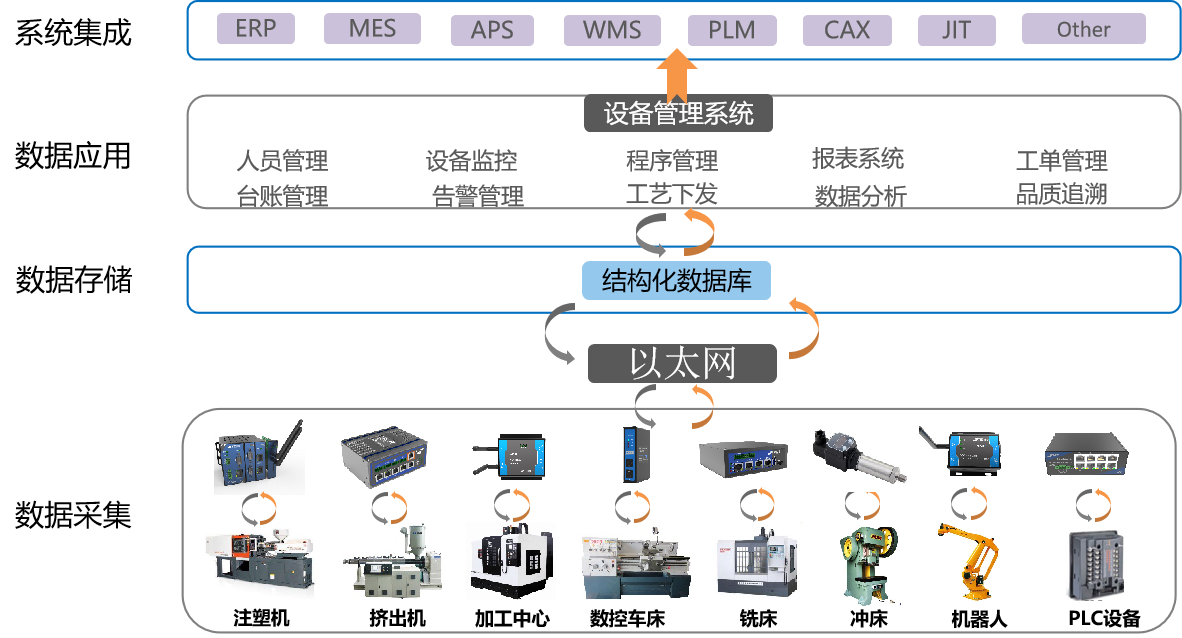 機械加工及半導(dǎo)體制造行業(yè)均以離散型生產(chǎn)為主,設(shè)備種類紛繁復(fù)雜、通訊方式各異,導(dǎo)致設(shè)備狀態(tài)難以監(jiān)控和統(tǒng)計,測試數(shù)據(jù)分散、各個機臺獨立采集和存儲,無法統(tǒng)一采集和分析,因此存在車間數(shù)十臺甚至數(shù)百臺設(shè)備缺乏統(tǒng)一管理、設(shè)備利用率低、生產(chǎn)效率低等問題。傳統(tǒng)的生產(chǎn)制造方式自主創(chuàng)新能力弱、產(chǎn)業(yè)產(chǎn)能過剩、新興產(chǎn)業(yè)供給能力不足、產(chǎn)業(yè)國際化程度低、研發(fā)體系和制造鏈相互分離等短板已經(jīng)嚴重制約了行業(yè)的生產(chǎn)力,如何依托工業(yè)互聯(lián)網(wǎng)邊緣層技術(shù)攻關(guān)結(jié)合行業(yè)特點實現(xiàn)多源異構(gòu)設(shè)備的互聯(lián)互通,通過邊緣智能及計算遷移實現(xiàn)邊云協(xié)同,最終推動工業(yè)互聯(lián)網(wǎng)平臺戰(zhàn)略加速機械加工及半導(dǎo)體制造行業(yè)高質(zhì)量發(fā)展顯得尤其重要。
