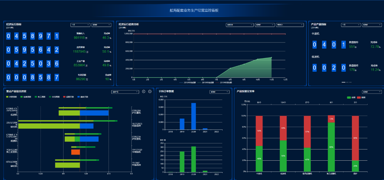 該模塊主要包括企業(yè)及其配套企業(yè)看板,企業(yè)看板中,展示配套企業(yè)的合同比例、總金額比例、訂單情況,生產(chǎn)狀態(tài)情況,拖期風(fēng)險(xiǎn)清單,拖期產(chǎn)品詳情(承接方、采購(gòu)方、設(shè)備類型、當(dāng)前節(jié)點(diǎn)、狀態(tài)),拖期比例,平均拖期天數(shù)。在非標(biāo)件配套企業(yè)看板中,展示合同數(shù)量,合同總金額,月度、在跟蹤、手持訂單情況,外委非標(biāo)件的生產(chǎn)狀態(tài)詳情,拖期風(fēng)險(xiǎn)清單,拖期詳情等核心信息。