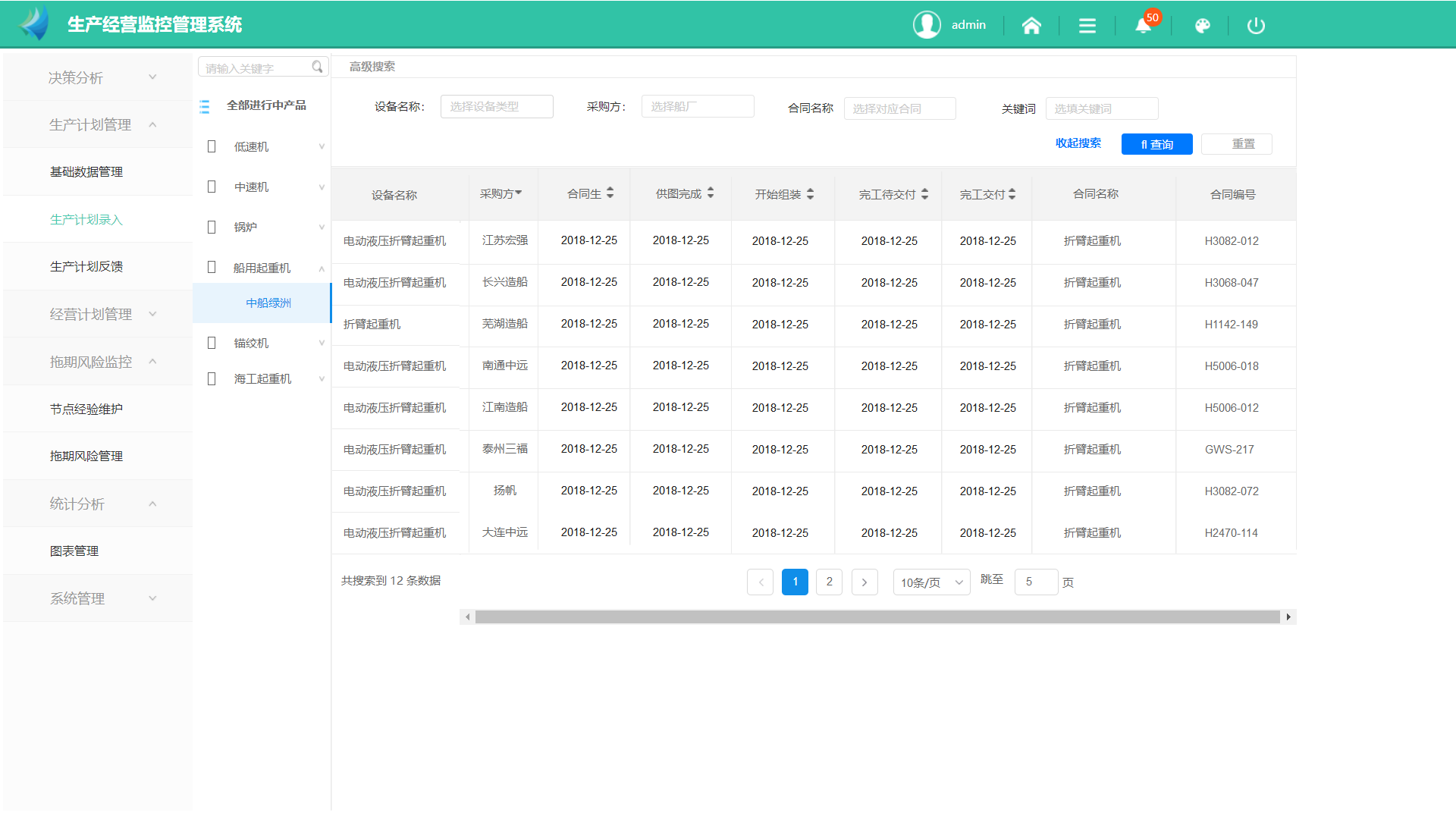 其中月度承接項(xiàng)目管理定義為月度新增的生產(chǎn)計(jì)劃;在跟蹤項(xiàng)目管理定義為尚未形成合同簽訂的項(xiàng)目;手持訂單管理定義為已簽訂合同尚未完成交付的項(xiàng)目;歷史訂單管理定義為已完成交付的項(xiàng)目。