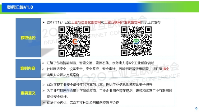 8月30日下午,在2020工業互聯網大會“工業互聯網安全”論壇上,工業互聯網產業聯盟安全組副主席張峰解讀了《工業互聯網典型安全解決方案案例匯編V3.0》,介紹了工業互聯網產業聯盟(簡稱“聯盟/AII”)典型安全解決方案歷年的征集情況,以及典型案例的分享。