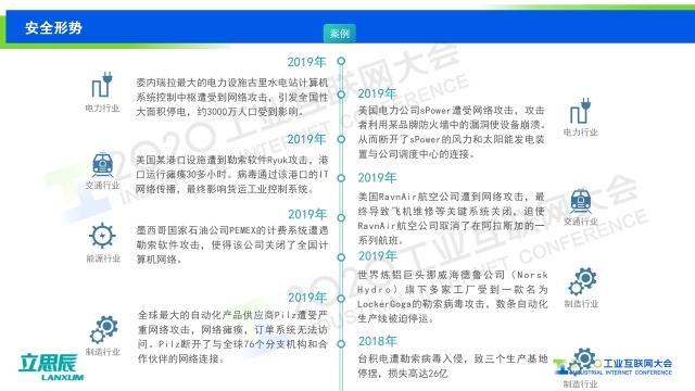 點擊鏈接,觀看演講視頻 專家說 “目前,以預防風險為核心的工業控制信息安全管理已成為業界共識。立思辰認為工業控制安全需要從“可知”“可管”兩方面入手。一方面企業需要“可知”:對工控資產可知,以確定工控安全防護范圍。對工控通訊過程可知,以確定可信運行環境。另一方面,企業需要“可管”:對工業協議可管,避免協議漏洞或異常協議訪問;對操作過程可管,對非法操作及可疑操作告警;對審計記錄可管,當事件發生后可追溯歷史。這樣才能更好的實現安全管控,提升經濟穩定運營能力,實現行業高質量發展?!?/p> 以下是演講PPT 敬請閱讀