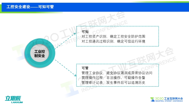在2020工業互聯網大會“工業互聯網安全”主題論壇上,北京立思辰信息安全科技集團工業互聯網事業部技術總監郭占先發表題為《保衛工控安全,護航國計民生——工業互聯網“大安全”可知可管》的演講,介紹了立思辰在工業控制安全方面“可知”“可管”的實施路徑。