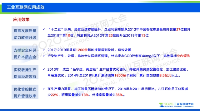 在2020工業(yè)互聯(lián)網大會“工業(yè)互聯(lián)網行業(yè)應用”主題論壇上,中國石油化工股份有限公司九江石化分公司信息中心主任徐燕平發(fā)表題為《九江石化工業(yè)互聯(lián)網應用實踐》的演講,分享九江石化近幾年在工業(yè)互聯(lián)網和智能工廠建設方面的實踐。