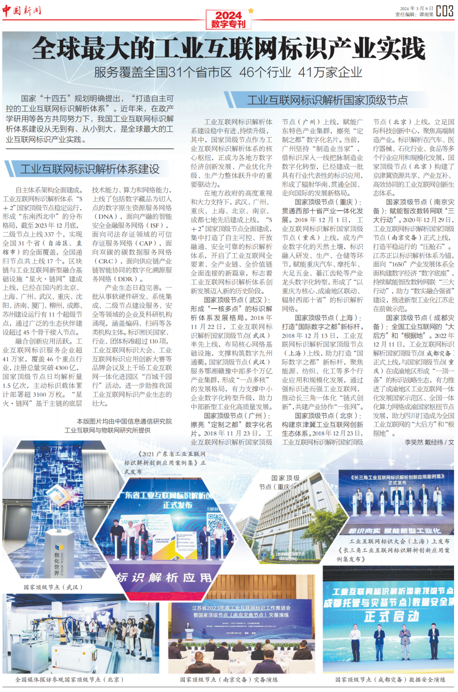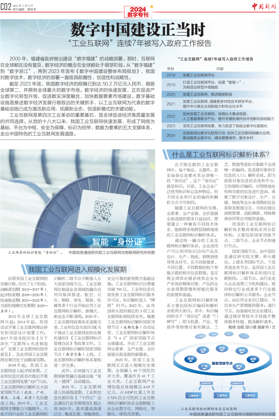 《中國新聞》兩會專刊:從工業互聯網標識的蓬勃發展看“我們離數字中國還有多遠”?