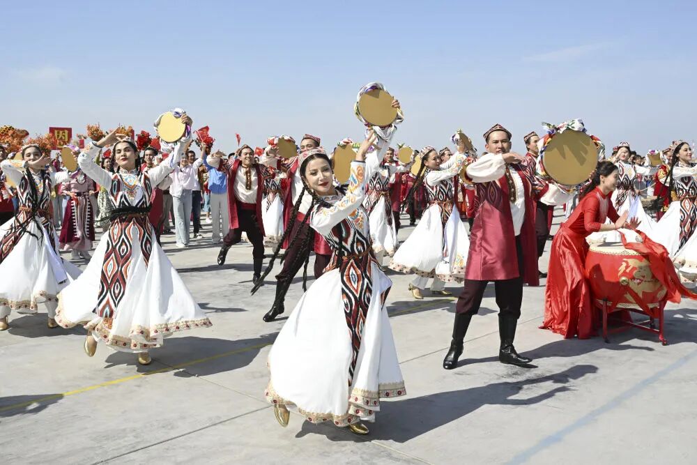2025年9月23日下午,群眾載歌載舞,喜迎新疆維吾爾自治區成立70周年。新華社記者 謝環馳 攝