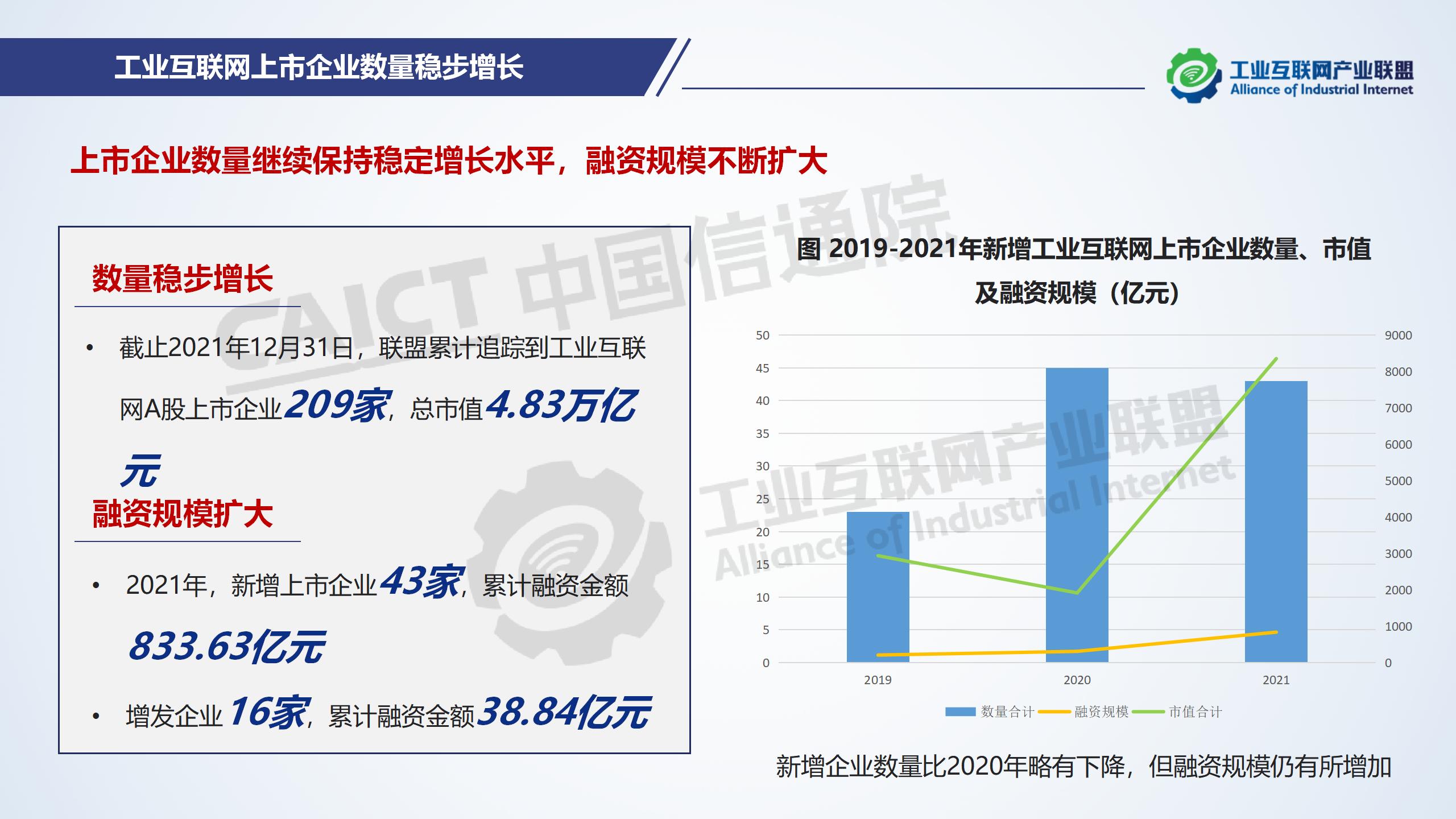 為落實(shí)工業(yè)互聯(lián)網(wǎng)創(chuàng)新發(fā)展戰(zhàn)略,引導(dǎo)金融支持工業(yè)互聯(lián)網(wǎng)發(fā)展,中國信息通信研究院牽頭聯(lián)合多家單位編寫《中國工業(yè)互聯(lián)網(wǎng)投融資報告(2021年)》。報告通過企業(yè)數(shù)量、市值、融資規(guī)模、地域分布、重點(diǎn)領(lǐng)域等維度對工業(yè)互聯(lián)網(wǎng)企業(yè)發(fā)展情況進(jìn)行深入分析,并對2022年工業(yè)互聯(lián)網(wǎng)的重點(diǎn)投融資領(lǐng)域給出展望和建議。
