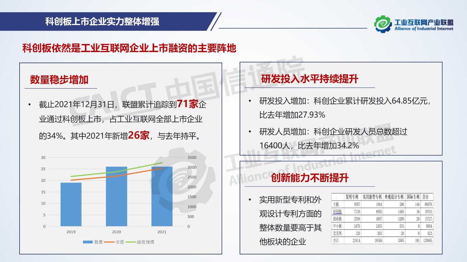 報告對2021年工業(yè)互聯(lián)網(wǎng)上市企業(yè)進(jìn)行統(tǒng)計,并對上市企業(yè)的上市板塊、區(qū)域分布、地方特色等進(jìn)行深入分析。報告發(fā)現(xiàn),我國工業(yè)互聯(lián)網(wǎng)上市企業(yè)數(shù)量穩(wěn)步增長,科創(chuàng)板是工業(yè)互聯(lián)網(wǎng)上市融資的主要渠道。