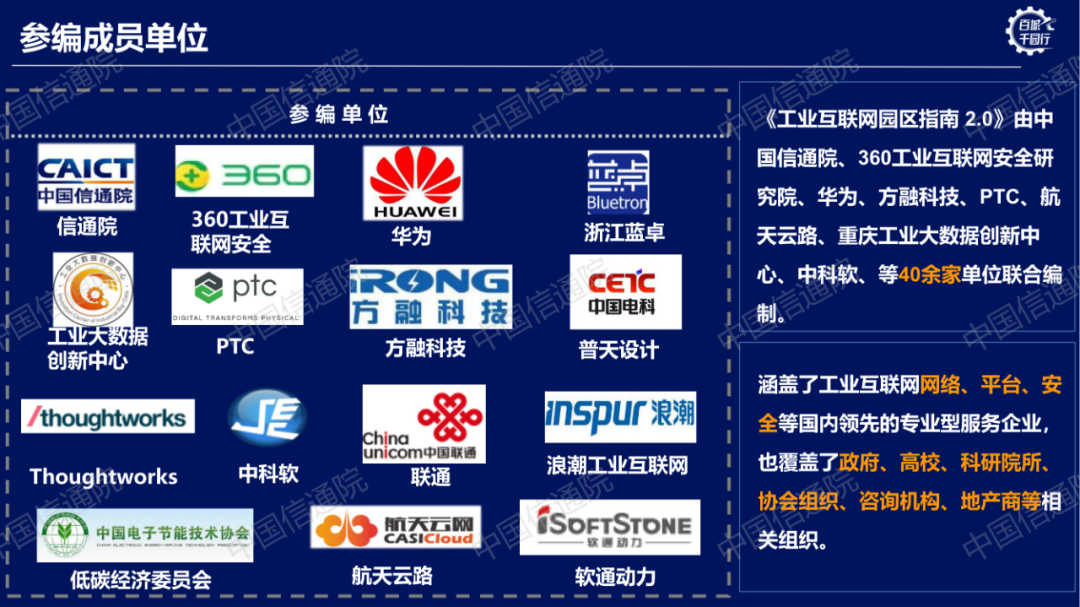 為有效指導工業互聯網園區的建設、運營與發展,工業互聯網產業聯盟于2020年4月發布《工業互聯網園區指南》,為產業界提供了園區轉型升級的參考和借鑒。隨著國家和各地十四五規劃的相繼出臺,以及圍繞做強做優做大數字經濟、促進數字化綠色化協同轉型發展、加速中小企業特色產業集群發展等政策措施的陸續發布,工業互聯網園區發展進一步提速,并呈現綠色低碳、虛實融合等新發展趨勢。在此背景下,為幫助產業界更加充分了解園區新的發展趨勢,更好地開展工業互聯網園區改造和建設,工業互聯網產業聯盟在工業和信息化部的指導下,編制完成了《工業互聯網園區指南(2.0版本)》(以下簡稱指南(2.0版本))。