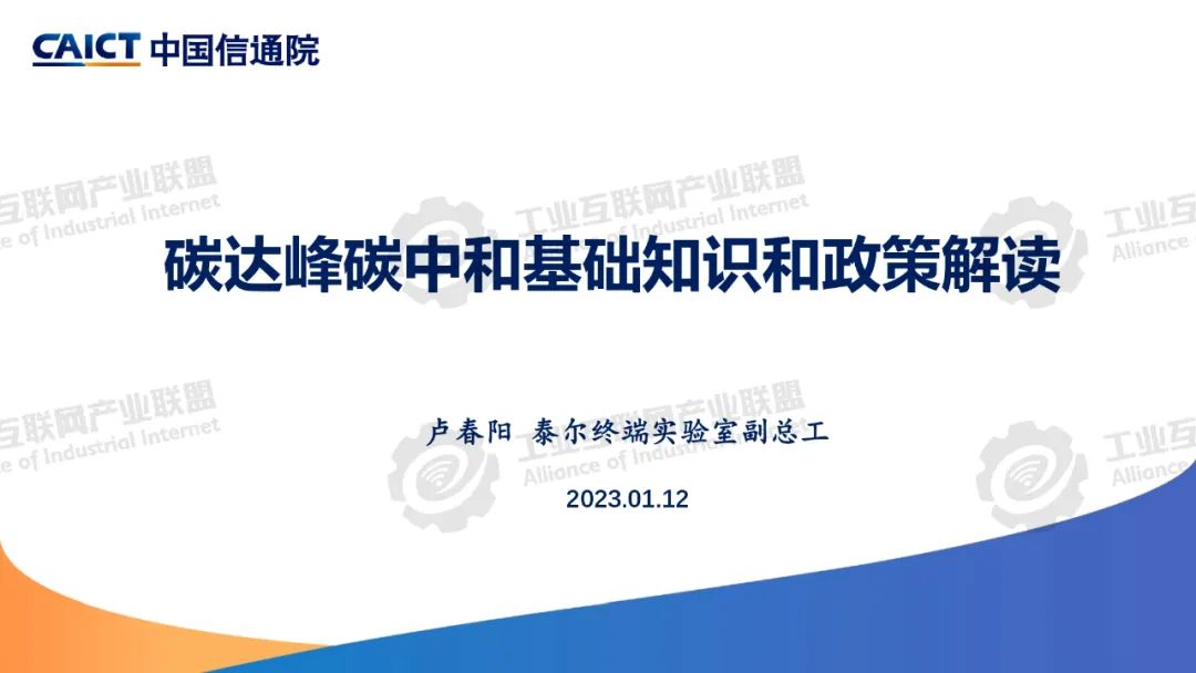 本期為您介紹由中國(guó)信息通信研究院泰爾終端實(shí)驗(yàn)室副總工盧春陽(yáng)分享的《碳達(dá)峰碳中和基礎(chǔ)知識(shí)和政策解讀》。盧春陽(yáng)講解了碳達(dá)峰碳中和的科學(xué)內(nèi)涵、經(jīng)濟(jì)內(nèi)涵和重要意義,分析了國(guó)內(nèi)外能源消費(fèi)結(jié)構(gòu)和我國(guó)碳排放的現(xiàn)狀,以及碳達(dá)峰碳中和面臨的挑戰(zhàn),解讀了我國(guó)碳達(dá)峰碳中和“1+N”政策體系,重點(diǎn)講解了《2030年前碳達(dá)峰行動(dòng)方案》具體重點(diǎn)行動(dòng)以及工業(yè)、建材和有色行業(yè)碳達(dá)峰實(shí)施方案的主要內(nèi)容。