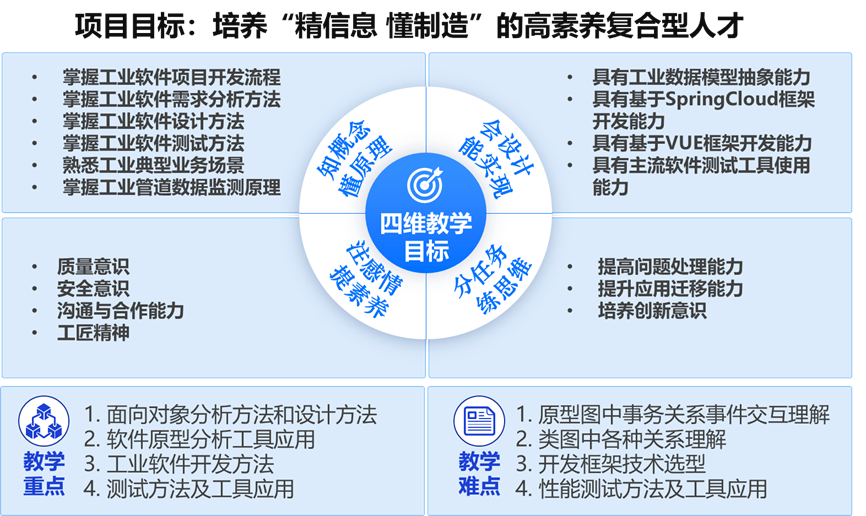 基地以建設國內一流設施與環境的工業互聯網技術實訓基地為抓手,通過項目工作室方式進行工業互聯網平臺、應用研發、實施運維的復合型人才培養,最終建成集人才培養、創新創業、社會培訓、技術服務為一體的產教融合示范基地,向工業互聯網產業輸送具備“金的人格、鐵的紀律、美的形象、強的技能、創的精神”特質的高素質人才。