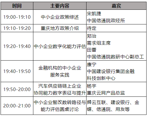 “我為企業辦實事”中小企業沙龍(19:00-21:00)