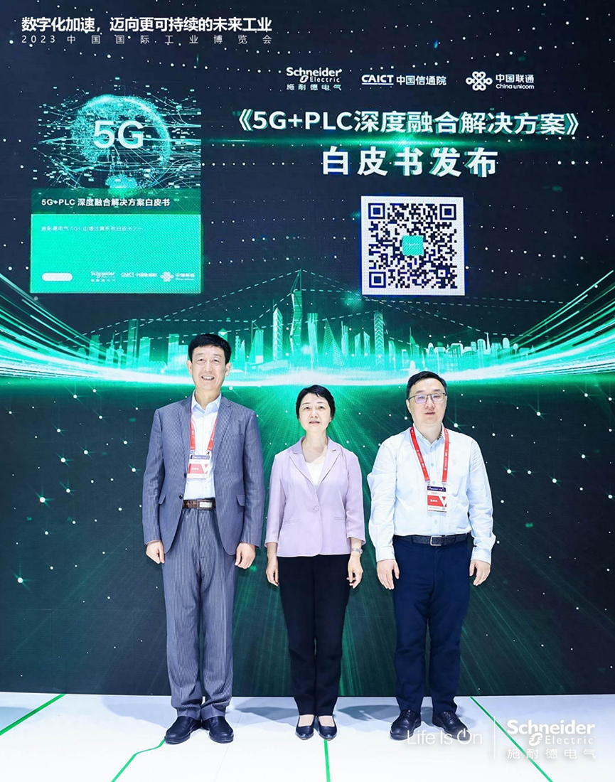 9月19日,《5G+PLC深度融合解決方案》白皮書在第二十三屆中國國際工業博覽會正式對外發布。中國信通院副院長王志勤,施耐德電氣高級副總裁、工業自動化業務中國區負責人龐邢健,中國聯通上海市分公司副總經理、中國聯通裝備制造軍團軍團長姚健共同出席白皮書發布儀式。