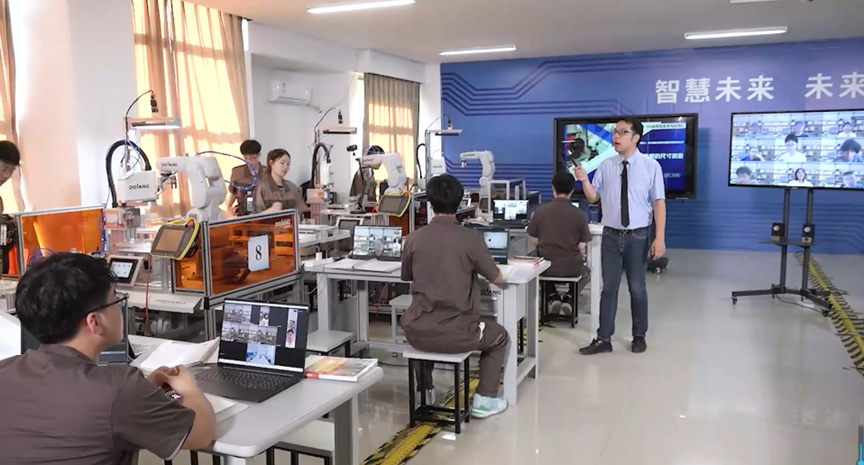 實(shí)訓(xùn)基地開展了眾多綜合實(shí)訓(xùn)項(xiàng)目:智能產(chǎn)線安裝、調(diào)試和運(yùn)維、工業(yè)互聯(lián)網(wǎng)平臺(tái)和工業(yè)軟件應(yīng)用、工業(yè)數(shù)據(jù)采集與可視化、工業(yè)機(jī)器人應(yīng)用、工業(yè)APP開發(fā)與應(yīng)用、視覺檢測(cè)系統(tǒng)應(yīng)用、智能產(chǎn)線數(shù)字孿生應(yīng)用等。