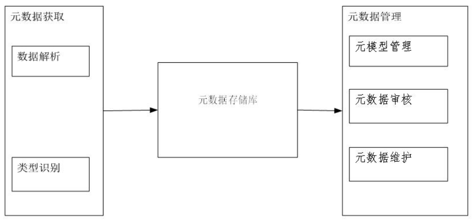 元數(shù)據(jù)管理實現(xiàn)了業(yè)務數(shù)據(jù)中實體和數(shù)據(jù)字段元素的定義、語義、業(yè)務規(guī)則和算法以及數(shù)據(jù)特征,便于完成業(yè)務數(shù)據(jù)的收集、組織和管理。元數(shù)據(jù)管理技術(shù)包括對元數(shù)據(jù)的采集、元數(shù)據(jù)的存儲以及元數(shù)據(jù)的管理,如圖1所示。