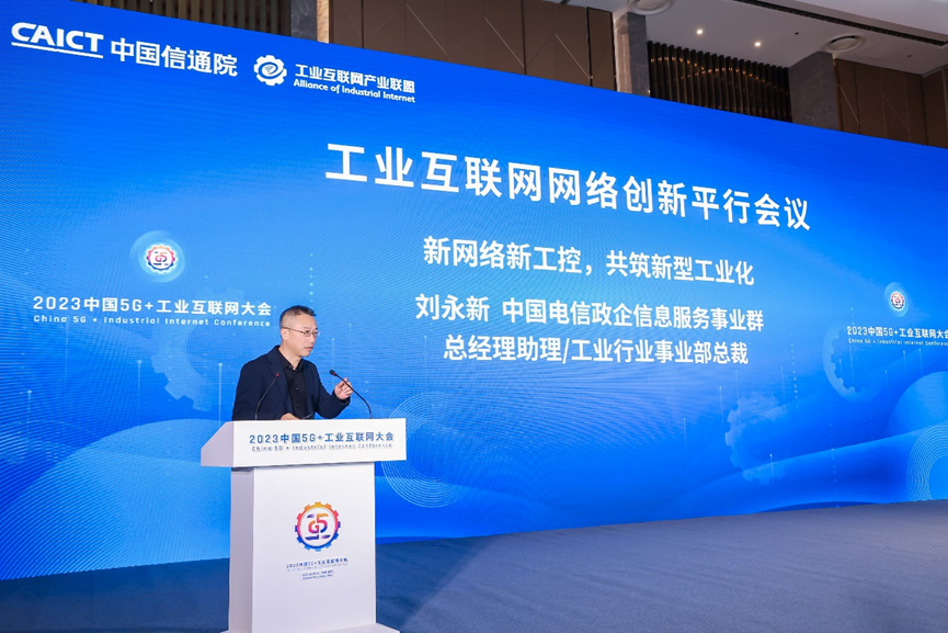 在新網絡新工控創新應用分享環節,中國電信政企信息服務事業群總經理助理、工業行業事業部總裁劉永新做了《新網絡新工控,共筑新型工業化》主題演講,從理解新型工業化和助力新型工業化兩方面,與會眾分享了近年來中國電信在新型工業化方面的實踐。