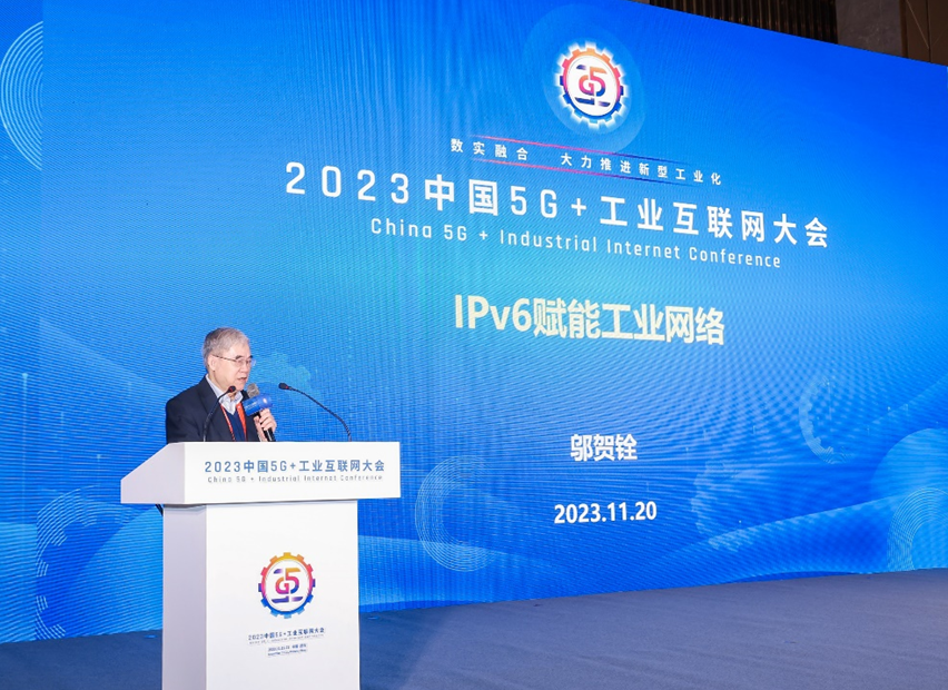 鄔賀銓做了題為“IPv6賦能工業網絡”的主旨演講。鄔院士從工業互聯網組成、網絡體系架構、網絡協議等工業網絡現狀入手,系統介紹了IPv6+技術特點,并從便捷性、靈活性、兼容性、開放性、可靠性、安全性等方面分析IPv6+賦能工業網絡。鄔院士的演講為我國推進IPv6在工業互聯網的應用發展提供了指導。