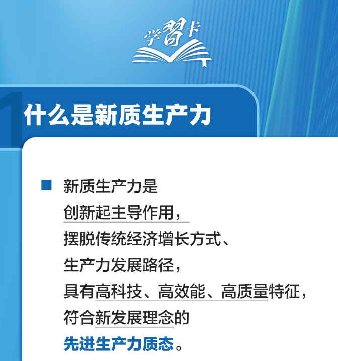 2023年9月,習(xí)近平總書記在黑龍江考察調(diào)研期間首次提到“新質(zhì)生產(chǎn)力”。2024年1月31日,習(xí)近平在中共中央政治局第十一次集體學(xué)習(xí)時強調(diào),加快發(fā)展新質(zhì)生產(chǎn)力,扎實推進高質(zhì)量發(fā)展。習(xí)近平總書記指出,高質(zhì)量發(fā)展需要新的生產(chǎn)力理論來指導(dǎo),而新質(zhì)生產(chǎn)力已經(jīng)在實踐中形成并展示出對高質(zhì)量發(fā)展的強勁推動力、支撐力,需要我們從理論上進行總結(jié)、概括,用以指導(dǎo)新的發(fā)展實踐。什么是新質(zhì)生產(chǎn)力,如何指導(dǎo)新的發(fā)展實踐,習(xí)近平總書記作了詳細闡釋,一起學(xué)習(xí)!