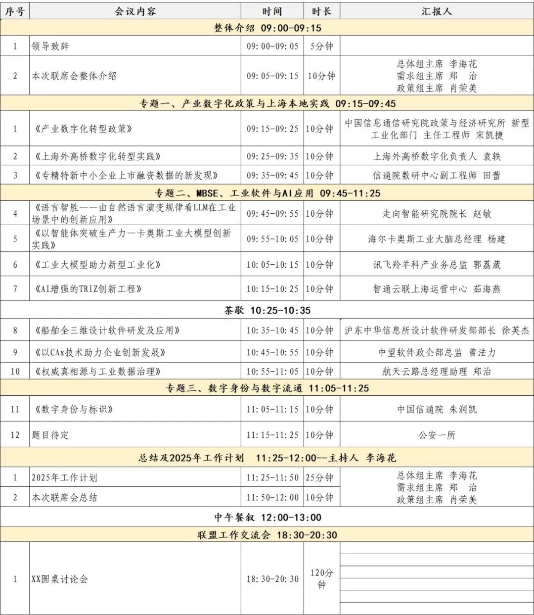 本次全會,總體組、需求組與政策法規與投融資組召開聯席會議,就產業數字化政策與上海本地實踐,MBSE、工業軟件與AI應用,數字身份與數據流通三大方向,與聯盟伙伴進行理念碰撞和經驗分享。