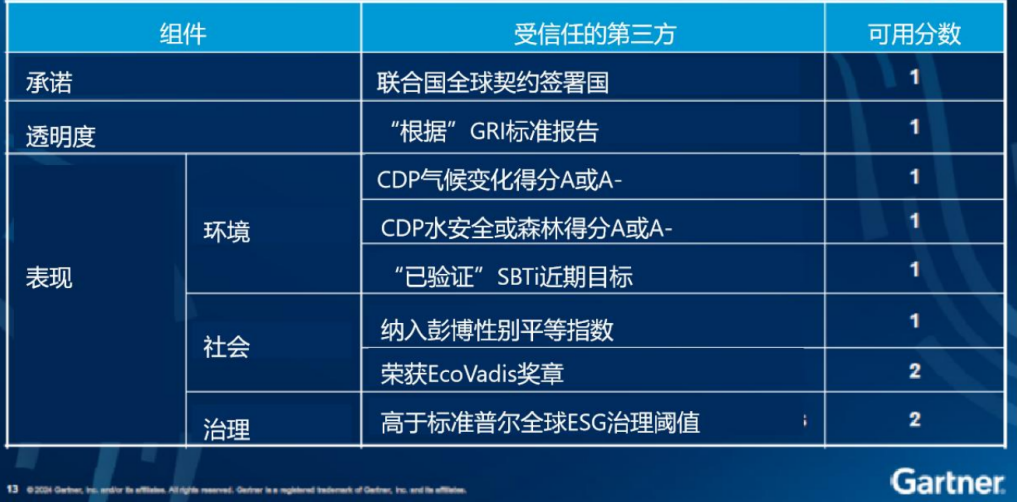 從多年的評選標準變化來看,ESG要求的占比或閾值不斷升高(如圖2),供應鏈可持續發展越來越受到評比的重視。2024 年將“供應鏈數據治理”和“端到端可持續供應鏈”作為 8 項頂級戰略性供應鏈技術趨勢。