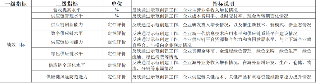 中國的“全國供應鏈創新和應用示范工作”是年度固定評選工作,參照2022年《全國供應鏈創新與應用示范創建工作規范》的示范企業績效考評主要指標如圖3。
