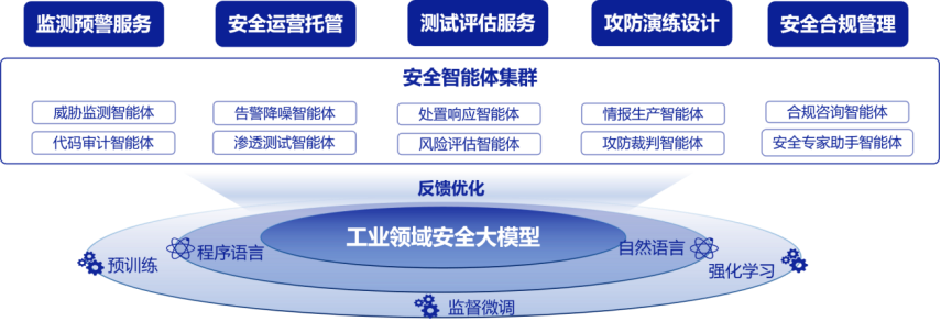 當(dāng)前,大模型、人工智能技術(shù)正在加速向各行各業(yè)賦能,帶動傳統(tǒng)產(chǎn)業(yè)向智能化、數(shù)字化深度演進(jìn),與此同時,工業(yè)領(lǐng)域網(wǎng)絡(luò)和數(shù)據(jù)安全形勢日益復(fù)雜,傳統(tǒng)技術(shù)手段難以滿足現(xiàn)階段安全防護(hù)需求。在此背景下,中國信息通信研究院依托工業(yè)互聯(lián)網(wǎng)安全技術(shù)試驗與測評工業(yè)和信息化部重點(diǎn)實驗室,基于工業(yè)領(lǐng)域網(wǎng)絡(luò)安全和數(shù)據(jù)安全垂域大模型,結(jié)合多年安全領(lǐng)域的知識經(jīng)驗,打造了集安全監(jiān)測、滲透測試、安全合規(guī)管理等多種能力于一體的工業(yè)領(lǐng)域安全智能體公共服務(wù)平臺(以下簡稱平臺),旨在為工業(yè)企業(yè)構(gòu)筑起一道“智能感知、主動防御”的安全屏障。