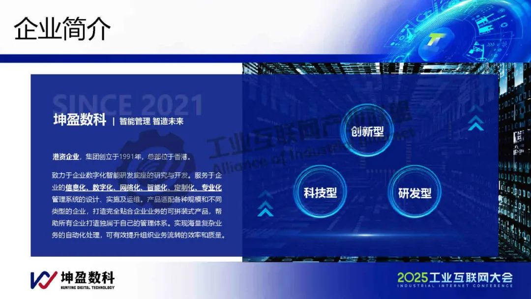 5月22日,在2025工業(yè)互聯(lián)網(wǎng)大會“新型工業(yè)控制與智能互操作發(fā)展專題活動”上,北京坤盈數(shù)科智能科技有限公司總經(jīng)理張譽發(fā)表了《企業(yè)數(shù)字化研發(fā)底座》的主題演講。