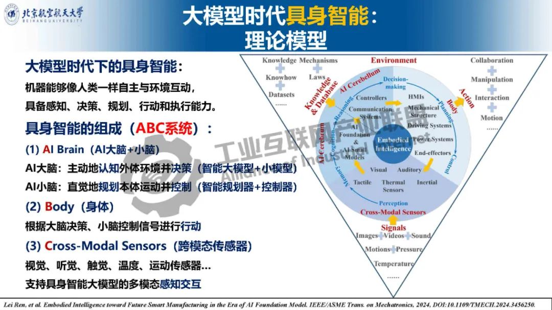 在新一代人工智能浪潮下,工業互聯網正邁向人工智能3.0時代。工業大模型將有望成為工業互聯網的中樞大腦,工業具身智能將為工業互聯網智能化應用提供創新形態的本體與技能,工業大模型和具身智能融合催生的新型工業智能體將成為未來的熱點方向。