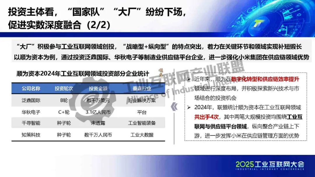 5月21日,在2025工業(yè)互聯(lián)網(wǎng)大會(huì)“工業(yè)互聯(lián)網(wǎng)產(chǎn)融合作專(zhuān)題活動(dòng)”上,工業(yè)互聯(lián)網(wǎng)產(chǎn)業(yè)聯(lián)盟政策法規(guī)與投融資組主席、中國(guó)信息通信研究院政策與經(jīng)濟(jì)研究所副所長(zhǎng)肖榮美發(fā)表了《2024年中國(guó)工業(yè)互聯(lián)網(wǎng)投融資報(bào)告——工業(yè)互聯(lián)網(wǎng)與金融 雙向賦能 共促發(fā)展》的主題演講。