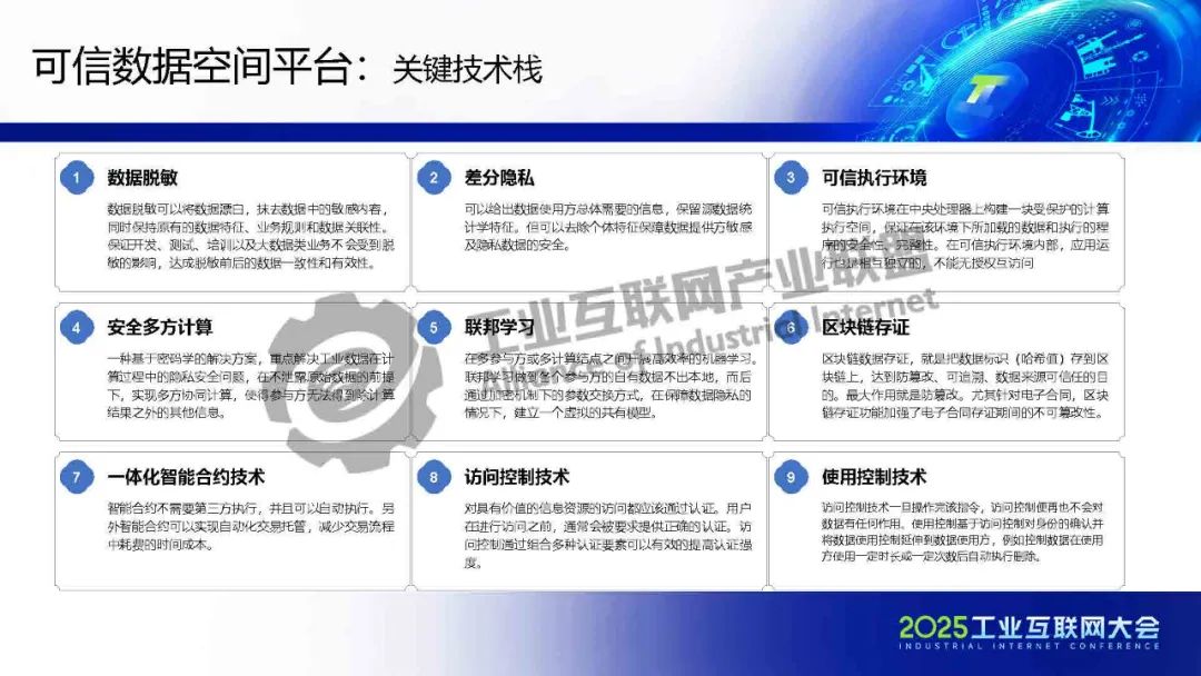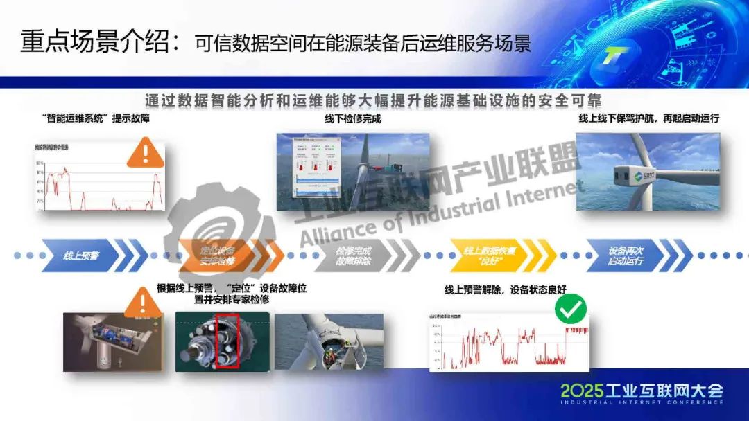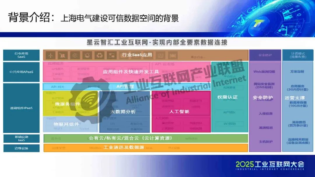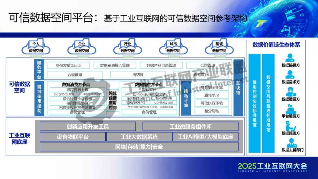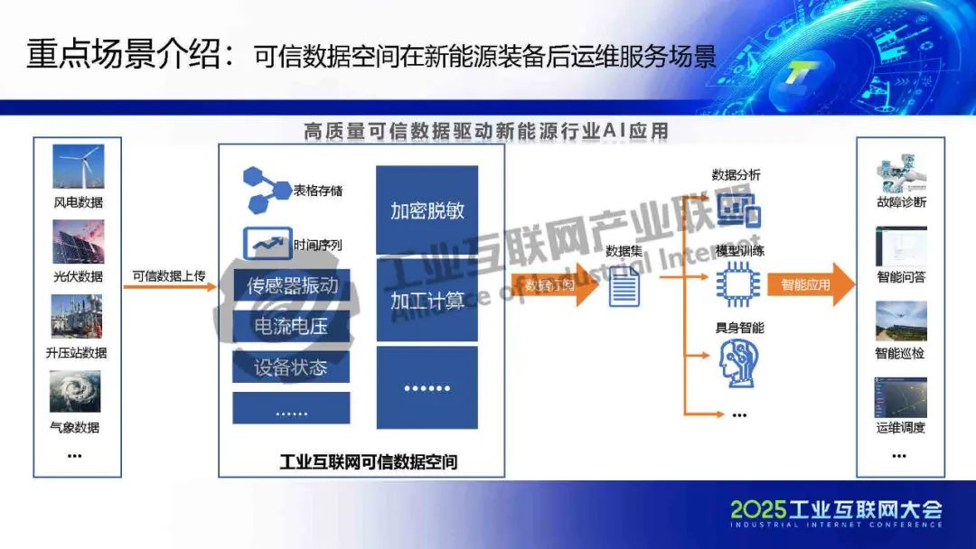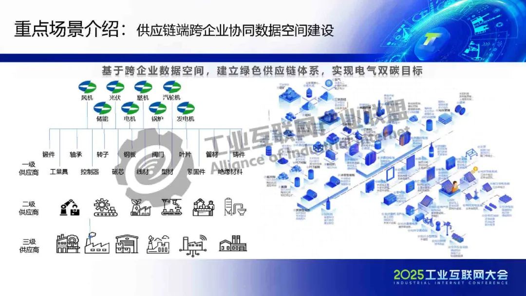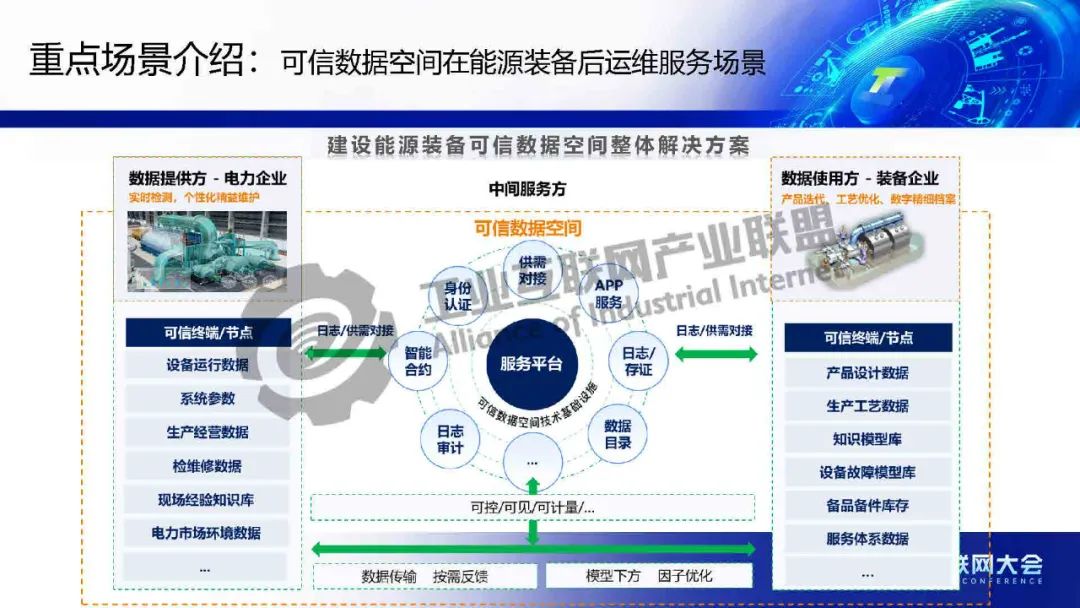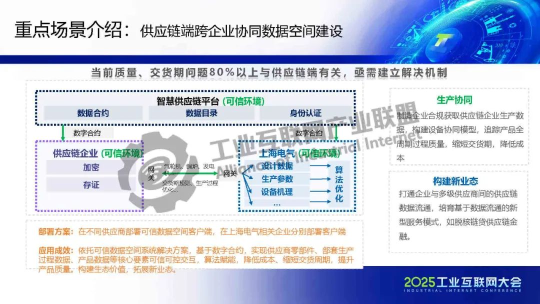 黃猛介紹,可信數(shù)據(jù)空間作為重要的數(shù)據(jù)流通基礎(chǔ)設(shè)施,依托上海電氣在能源和工業(yè)裝備領(lǐng)域的全產(chǎn)業(yè)門類及豐富數(shù)據(jù)場景,構(gòu)建了數(shù)字化基礎(chǔ)能力,包括星云智匯工業(yè)互聯(lián)網(wǎng)和智慧供應(yīng)鏈平臺,實現(xiàn)了全要素數(shù)據(jù)連接與跨企業(yè)協(xié)同。該平臺基于工業(yè)互聯(lián)網(wǎng)底座,整合區(qū)塊鏈、隱私計算、身份管理等技術(shù),確保數(shù)據(jù)安全與跨域使用控制。重點應(yīng)用場景包括能源裝備后運維服務(wù),通過數(shù)據(jù)智能分析提升安全可靠性,并驅(qū)動新能源行業(yè)AI應(yīng)用;以及供應(yīng)鏈端跨企業(yè)協(xié)同,通過可信數(shù)據(jù)空間解決質(zhì)量與交貨期問題,實現(xiàn)金融普惠、綠色供應(yīng)鏈和雙碳目標。