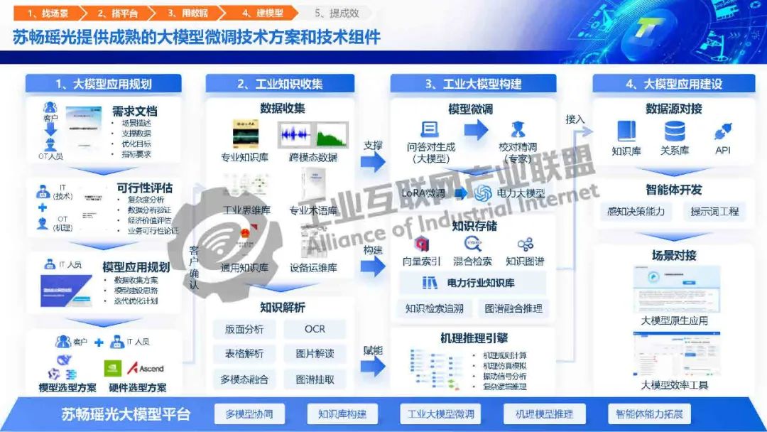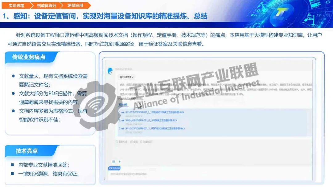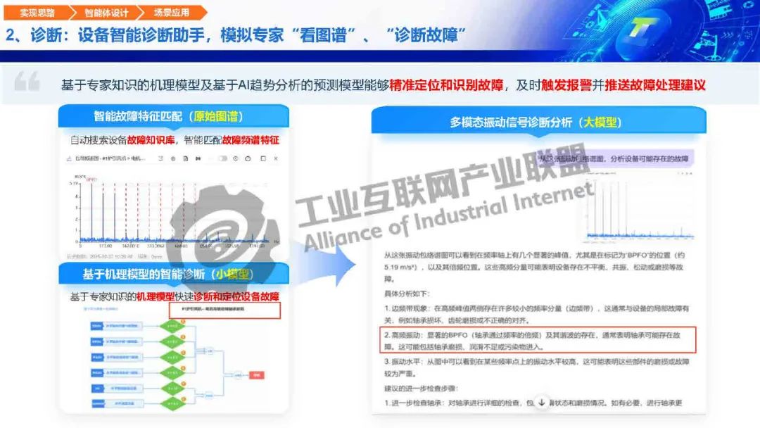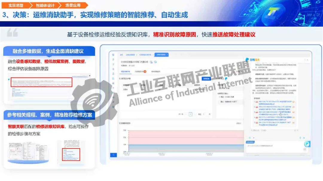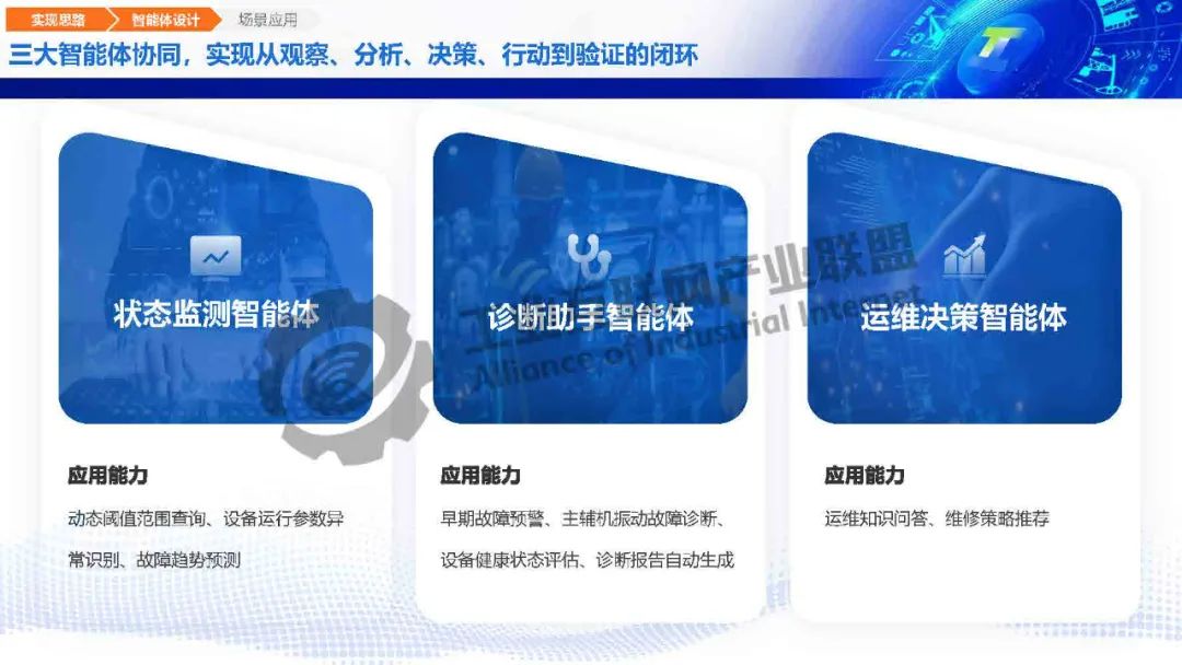 毛旭初介紹,工業大模型基于海量工業多模態數據訓練,具備工業知識推理、生產風險識別、工藝仿真優化等決策能力?,幑夤I大模型在小模型的基礎上加持大模型的生成、推理、調度能力,實現故障綜合判斷,三大智能體協同,實現從觀察、分析、決策、行動到驗證的閉環。