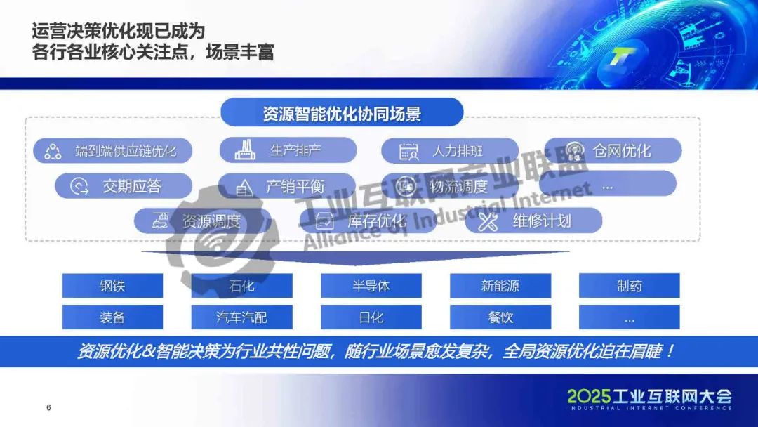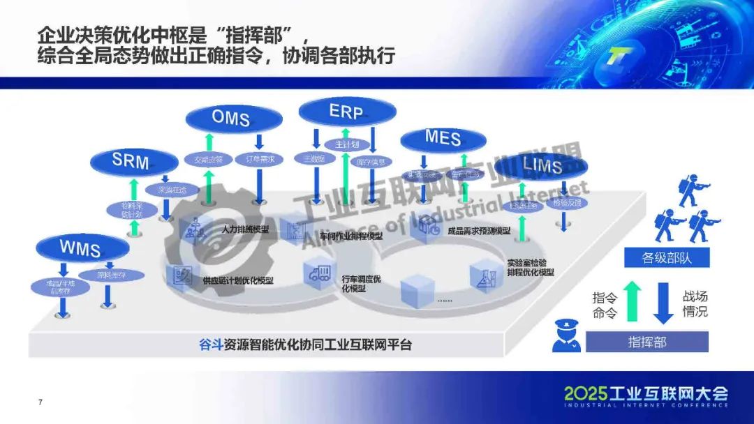 企業(yè)決策優(yōu)化中樞可比作"指揮部",通過其資源智能優(yōu)化協(xié)同工業(yè)互聯(lián)網平臺整合ERP、SRM、WMS等各業(yè)務系統(tǒng)數(shù)據(jù),形成全局態(tài)勢感知。該平臺包含成品需求預測、供應鏈計劃優(yōu)化、車間作業(yè)指揮等專業(yè)模型,像指揮部一樣綜合分析生產任務、設備流程、實驗室檢驗等"戰(zhàn)場情況",生成最優(yōu)指令并協(xié)調各部門執(zhí)行。這種"指揮-部隊"協(xié)同模式實現(xiàn)了從主計劃到具體作業(yè)的全鏈路智能決策,有效提升了企業(yè)在復雜業(yè)務環(huán)境下的資源優(yōu)化和協(xié)同效率。