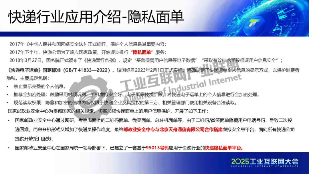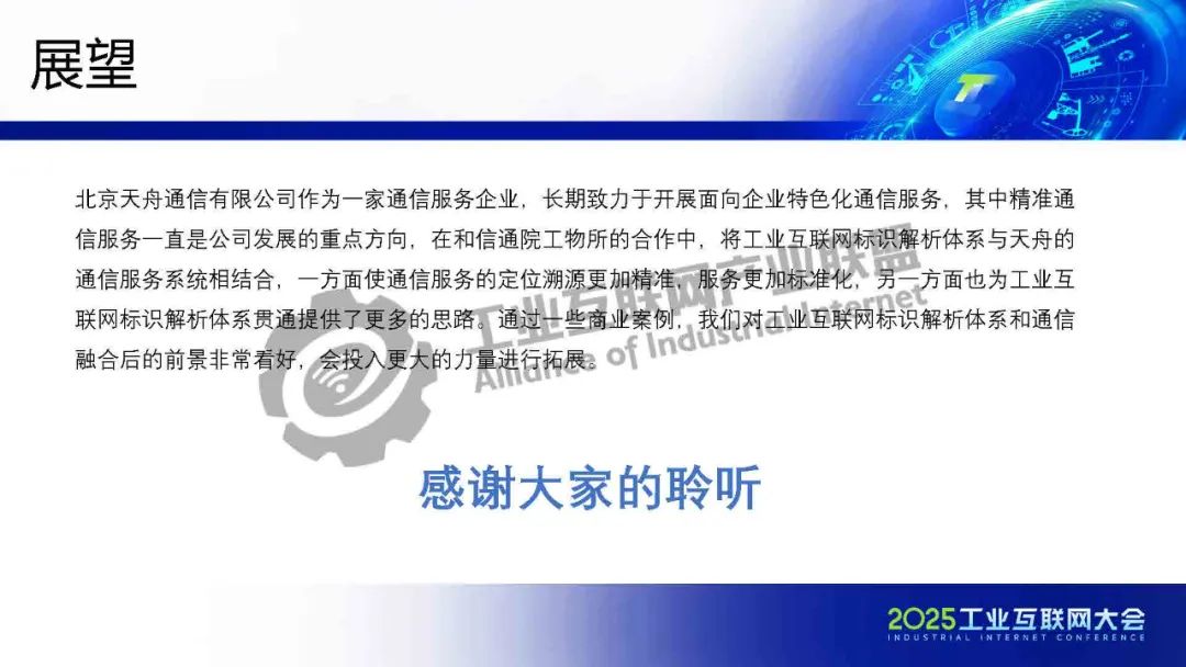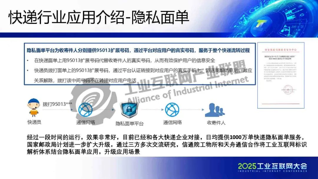 5月23日,在2025工業(yè)互聯(lián)網(wǎng)大會(huì)“工業(yè)互聯(lián)網(wǎng)標(biāo)識(shí)解析貫通專題活動(dòng)”上,北京天舟通信有限公司副總經(jīng)理孫大成發(fā)表了《基于“標(biāo)識(shí)+號(hào)碼呼叫”的郵政快遞行業(yè)數(shù)據(jù)管理及應(yīng)用》的主題演講。