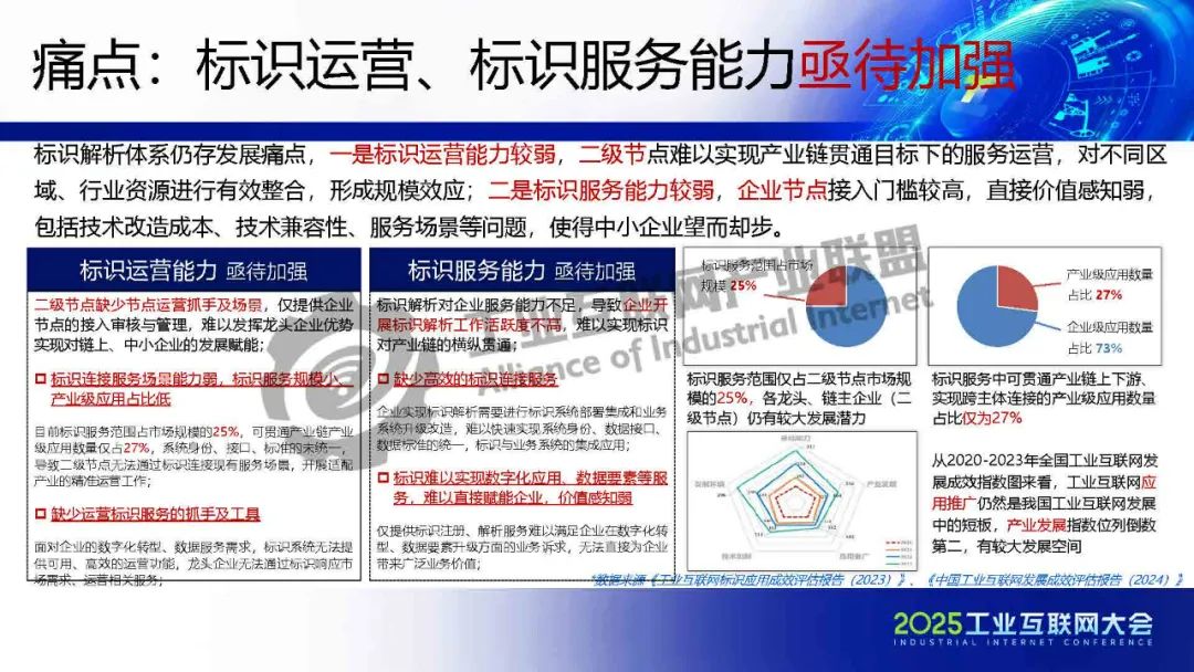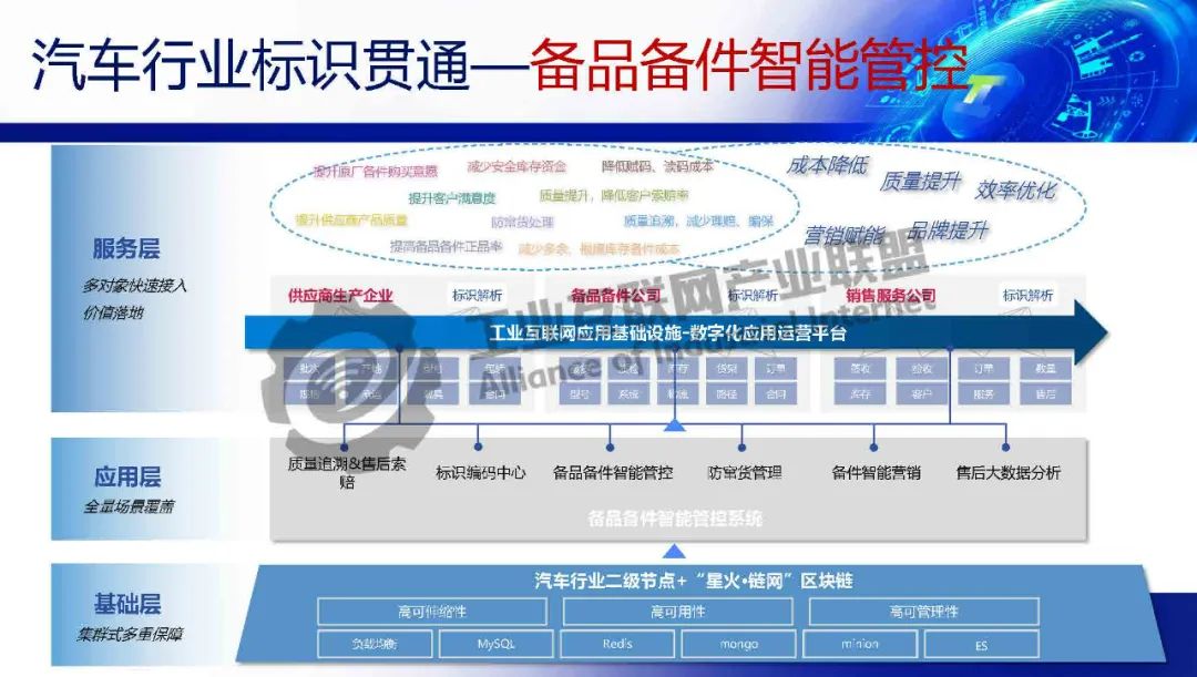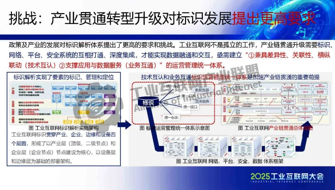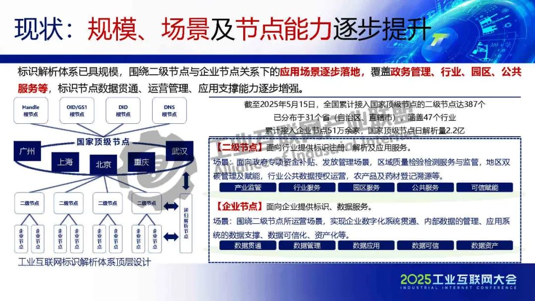 田馳介紹,標識解析體系已具規模,圍繞二級節點與企業節點關系下的應用場景逐步落地,覆蓋政務管理、行業、園區、公共服務等,標識節點數據貫通、運營管理、應用支撐能力逐步增強。政策及產業的發展對標識解析體系提出了更高的要求和挑戰?;诠I互聯網標識解析的工作基礎及成果,建設可兼具差異性、關聯性、橫縱聯動,并支撐應用與數據服務融通的工業互聯網標識解析數智化賦能體系,加強標識服務及節點運營能力建設,驅動工業互聯網一體化發展,加速標識解析實現各領域產業鏈貫通。