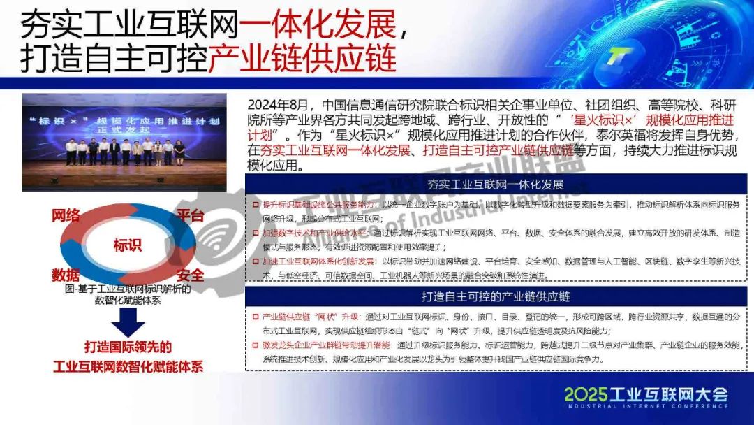 5月23日,在2025工業互聯網大會“工業互聯網標識解析貫通專題活動”上,北京泰爾英??萍加邢薰緲I務發展部副總經理田馳發表了《數字基建升級助推數字經濟創新發展》的主題演講。